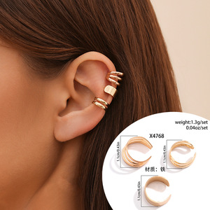 ヨーロッパとアメリカの国境を越えたデザインのメタル光沢のある水滴ビーンイヤークリップパーソナライズされた幾何学的なプレーンフーププリーツイヤリングイヤリング