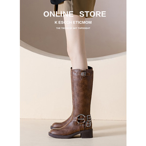 2023秋のベルトのバックルの太さとマーティンの靴は膝を越えています。