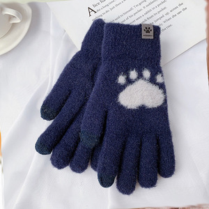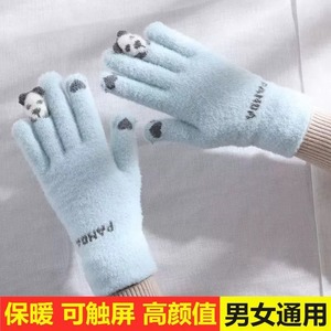 手袋秋冬女性保温学生韓国版かわいいベルベット厚手自転車五本指防寒タッチできる綿手袋