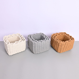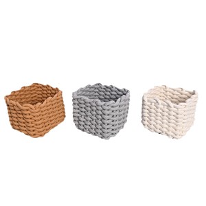 綿のひもの正方形のセットの3つの収納かごのシンプルな風はかごのテーブルの上の間食を収納します。