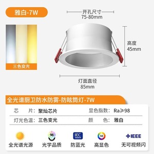 【全スペクトル保護眼 ≧ 98】7w白色-防水ダウンライト
