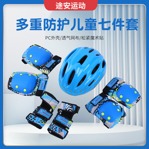 子供用ローラースケート保護具セットの保護頭が転倒防止バランス車のスケートボードの厚手の服を着て運動保護具を7点セット