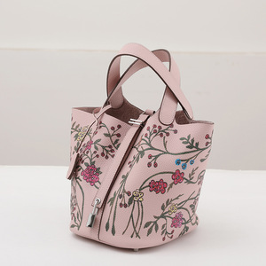 第一層トーゴ牛革塗装野菜かごハンドバッグレザーリーフレディースバケットバッグ