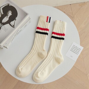 潮牌tbウール靴下秋冬厚手保温男女中筒靴下三バーストライプ日系insスタッキングソックス