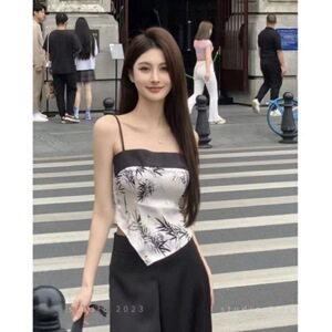 新中国式レトロな水墨画のストラップの小さいベストの女性の夏の純欲の甘いギャルの不規則な短いタイプは胸の上着を拭きます。