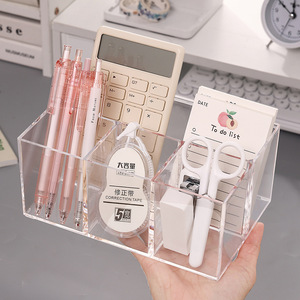 アクリルペンホルダー透明バケツオフィス本デスクトッププラスチック文房具分格学生マークカラー絵筆収納ケース