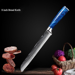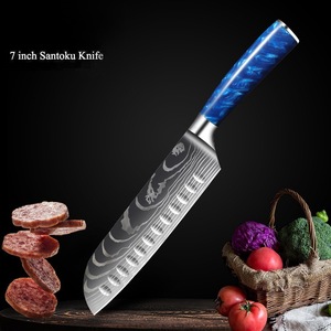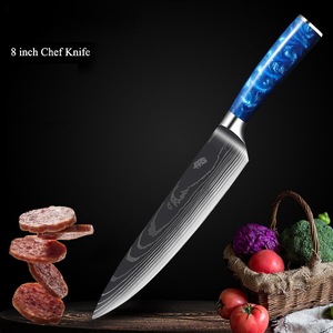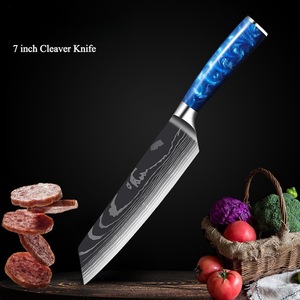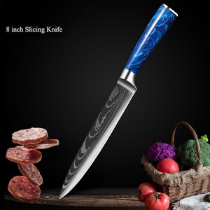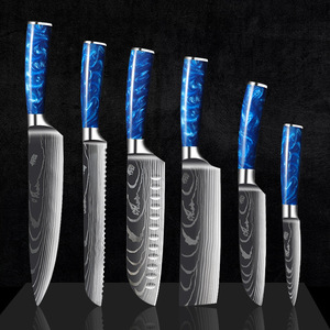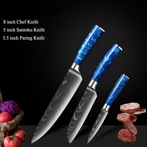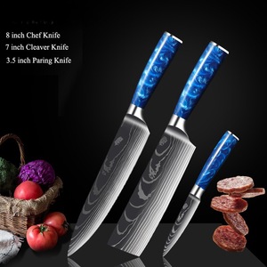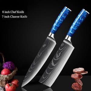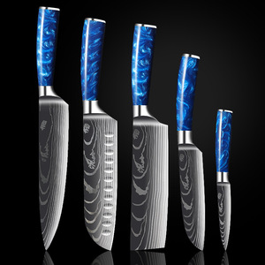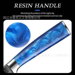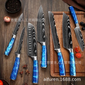 跨境外贸蓝色树脂大马士革纹厨师刀套装刀三德刀水果刀日式刀剔骨
