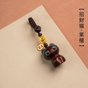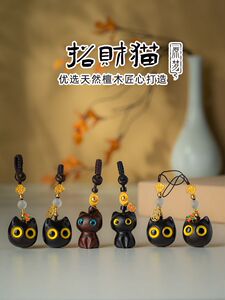 元夢黒檀木子猫車の鍵ストラップ携帯チェーンバッグ掛けキーホルダー男プレゼント