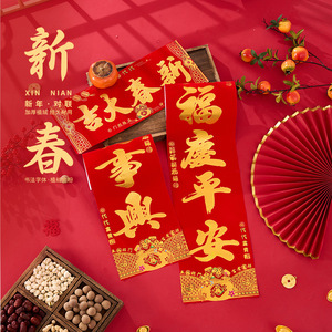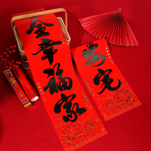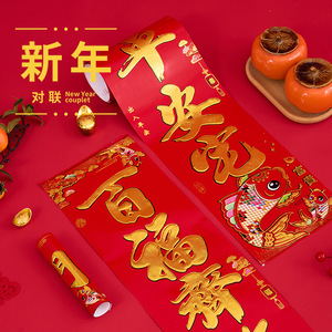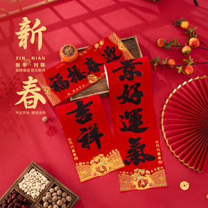 2026马年春节绒布对联家用大门装饰植绒门贴新年过年铜版纸春联