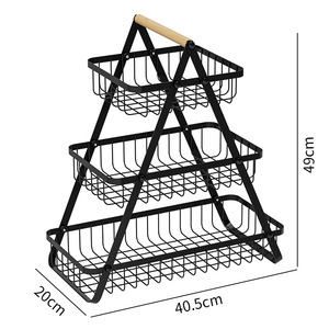 クロスボーダー鉄製二層フルーツバスケット、キッチン、リビングルーム、デスクトップ収納ラック、パンバスケット、木製ハンドル付き三層ハンドバスケットスタンド
