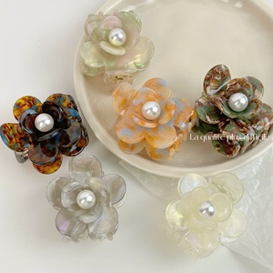 韓国版の酢酸の質感の二重真珠の花は中号の半つかみのクリップの新型の百合の気質のサメのクリップをつかみます。