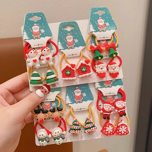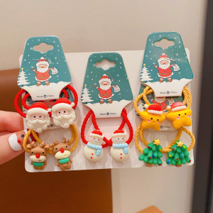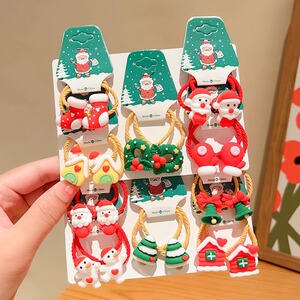 クリスマスの頭飾り子供の皮筋の女の子の漫画のサンタクロースの赤い髪ひもの女の子は髪ひもの髪飾りを傷つけません。