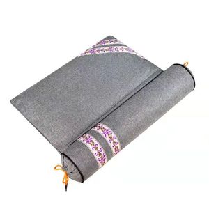 小さな灰色の粗い布の三角枕 - そばの詰め物