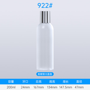 922#光沢のある銀メッキのキャップ + つや消しのラウンドショルダーボトル、200ml、プラスチック