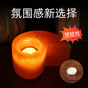 ヒマラヤの塩石の燭台の置物の客間の寝室のベッドの頭のテーブルのろうそくの光の夕食のロマンチックな交換のろうそくの台