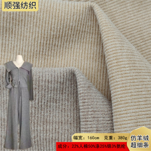 380g/280g仿羊绒超细条针织1*1坑条罗纹磨毛面料 秋冬保暖服套装
