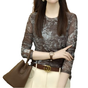 プリントメッシュのインナーレイヤー、女性用長袖Tシャツ、秋の新作、おしゃれで肌に優しい伸縮性のあるトップス、グラデーションカラー