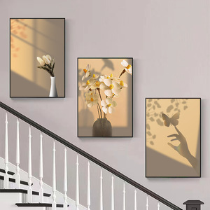 複式階段の入り口の間に装飾画があります。