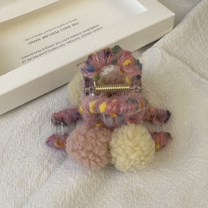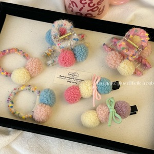 日系撞色羊羔毛球球发夹可爱奶油色侧边刘海鸭嘴夹发绳皮筋抓夹女