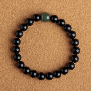 手囲い16cm黒檀丸ビーズブレスレット - 和天翡翠トップビーズスタイル