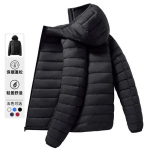 反季の新型の薄い羽毛の綿服の男性は帽子の短いタイプの青年の大きいサイズのメンズのコートの男性と一緒にいます。