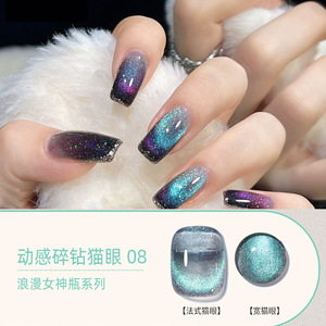 ダイナミックな砕いたダイヤモンドクリスタルキャッツアイネイルジェル 2025年新作 輝きキャッツアイセット ネイルサロン専用