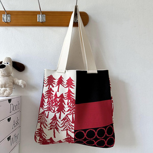 ショルダーバッグ女性のための 2024 森漫画クリスマスツリー織バッグファッション学生大容量ニットハンドヘルドクロスボディバッグ