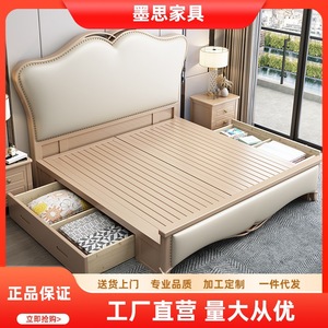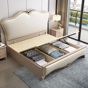 アメリカの実木ベッドは軽くて豪華で、現代的でシンプルな二人の寝室は大きい1.8メートルのヨーロッパ式のソフトバッグは一人の高箱の貯蔵物です。