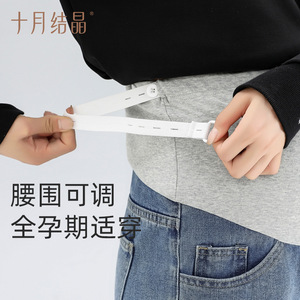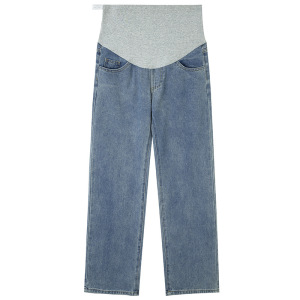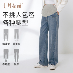 10月の結晶妊婦のズボンの秋の外は広脚のジーパンのまっすぐな筒のカジュアルな広脚のズボンの妊婦のファッション的な秋の服を着ます。