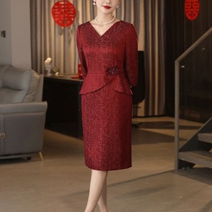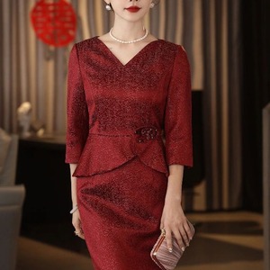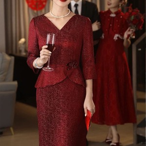 結婚式のお母さんのドレスのロングスカートの気質のハイエンドの女神の範は腰を収めてやせています。