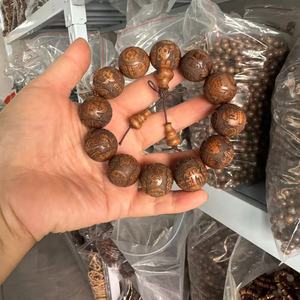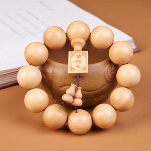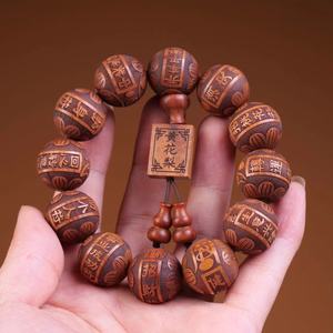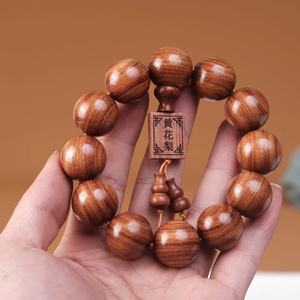 大葉の黄色のナシの仏珠の手は赤い木の男女のブレスレットの流行の文を刺して飾って木の工芸品の文を遊んで数珠を遊びます。