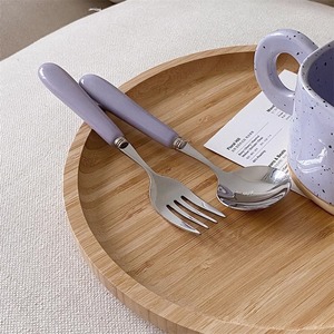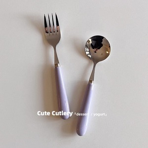 韓国式サトイモ紫デザートスプーンサラダフォーク長柄家庭用食器セットステンレスネット赤フォークスプーンスプーン