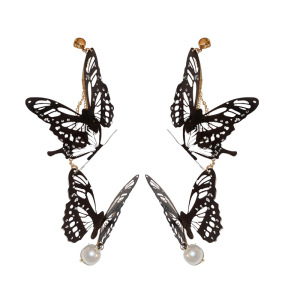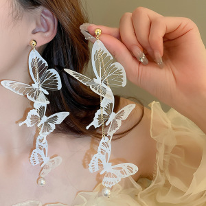 誇張されたアクリル蝶のロングフリンジシルバーピアス、ヨーロッパとアメリカの個性的なニッチな雰囲気、高級感のある女性用イヤリング