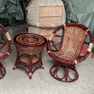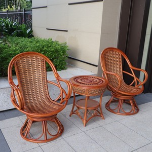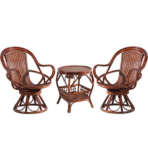 真藤椅子三点セットベランダカジュアル茶何小テーブルと椅子の組み合わせ窓際シングル背もたれ回転藤椅子家庭用