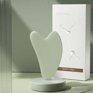 粉晶ローラー顔マッサージ非玉美容棒ダブルヘッドは顔の目元の穴を押してハート型のスクレーパーを引き出して卸売りします。