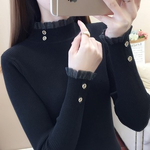 ニットの底のシャツの新型の2022秋冬の半高襟のレースは長袖の中で襟の中でセーターの女性を掛けます。