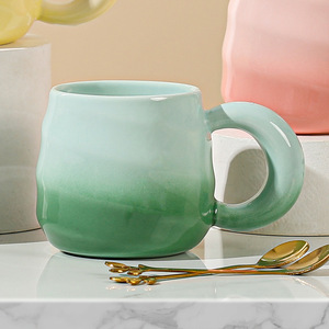 Ins風グラデーションねじ陶磁器カップ高顔値マカロンクリーム風マグカップネット赤オフィスコップ
