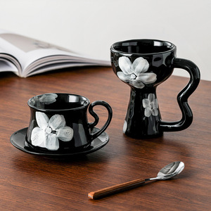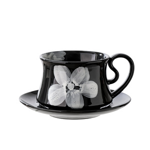 創意的なコーヒーカップの皿の陶磁器の高い足のお菓子の皿の手描きの日本式のレストランの午後のお茶のカップルの家庭用のコップの食器