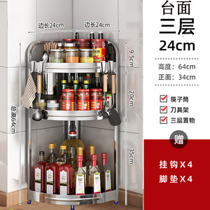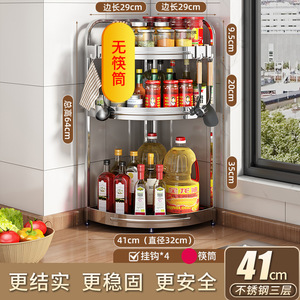 ステンレスキッチンコーナー棚油塩渍け酢三脚調味料用品壁の隅に着地してナイフホルダーを収納する