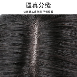 かつらの女性の長い髪の頭の上で髪の毛を補います。大面積は白髪の増発量を遮ります。