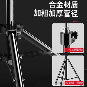 携帯電話ライブブロードキャストスタンド床置き型格納式折りたたみ式 2.1m スタンド携帯電話クリップ + 回転雲台 + 収納バッグ