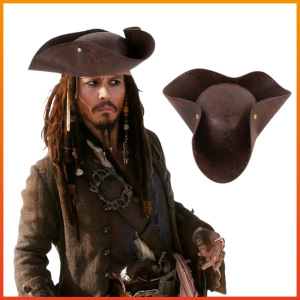 キャプテン・ジャック・クローバー カリブ海の海賊装飾帽子 ステージパフォーマンス帽子 ハロウィン フェイクレザー 旅行用三角帽子