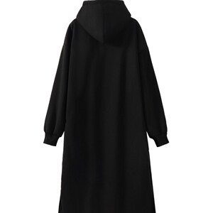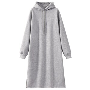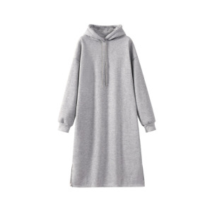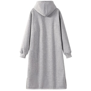 2025年秋冬新作、大きいサイズのレディーススウェットワンピース、スリット入りフード付きロングワンピース、ぽっちゃりさん向けカジュアルインナー冬ワンピース