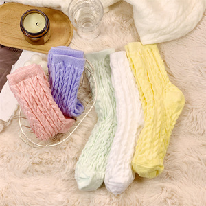 柔らかいモチモチの防臭麻花の毛の靴下の子供の秋冬の日系のマカロンの色の中筒の靴下とベルベットの防寒の月子の靴下の厚い