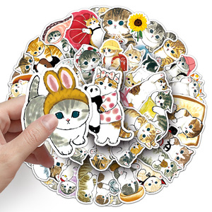 50枚の手描きの子猫の漫画の動物のかわいいカードの素材の防水の装飾の水杯の携帯電話の携帯電話の帳簿のステッカー