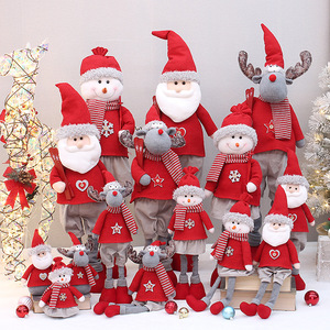 クリスマスの新しい赤いニットの布芸の座り方と伸縮できる老人の雪だるまのヘラジカの公仔の布景の装飾の置物