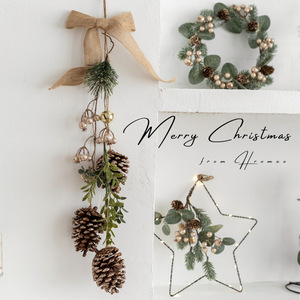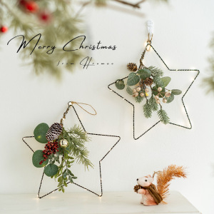 圣诞节装饰香槟色系松果花环藤条灯串装饰布置ins挂件拍照道具