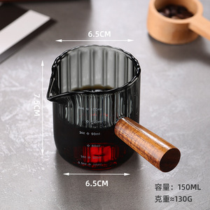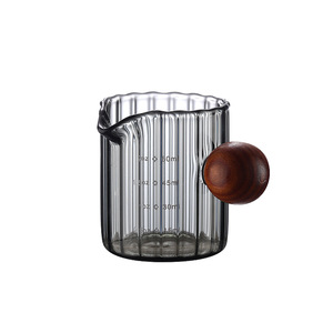 縦縞ガラスコーヒーカップ断熱高ホウ素シリコン熱防止シンプル家庭用グラス木柄調コーヒーカップ