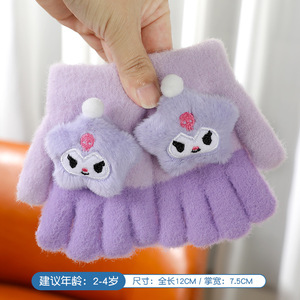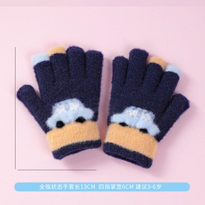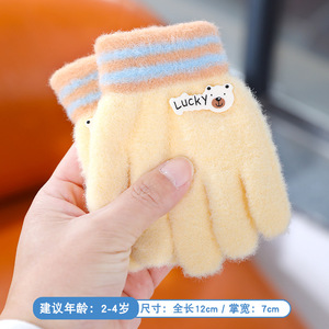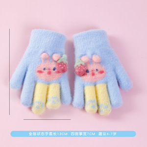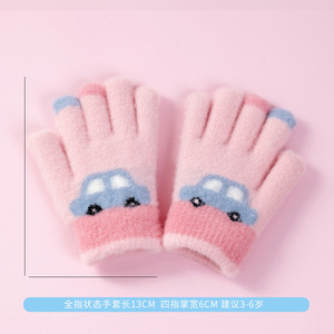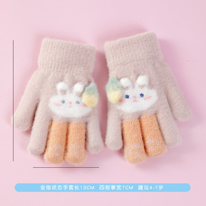 儿童五指手套冬季男女童分指保暖手套中大童卡通毛绒加厚防冻手套