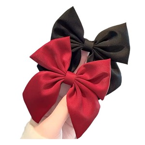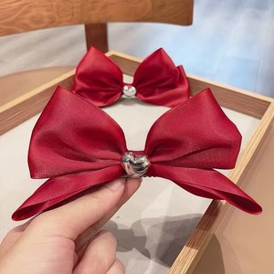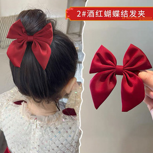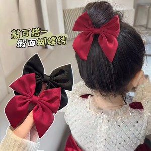 赤い蝶結びの髪飾りのヘアピン子供のサテンの新年の髪飾りの後頭部のカモの口は高級感のあるヘアピンを挟みます。